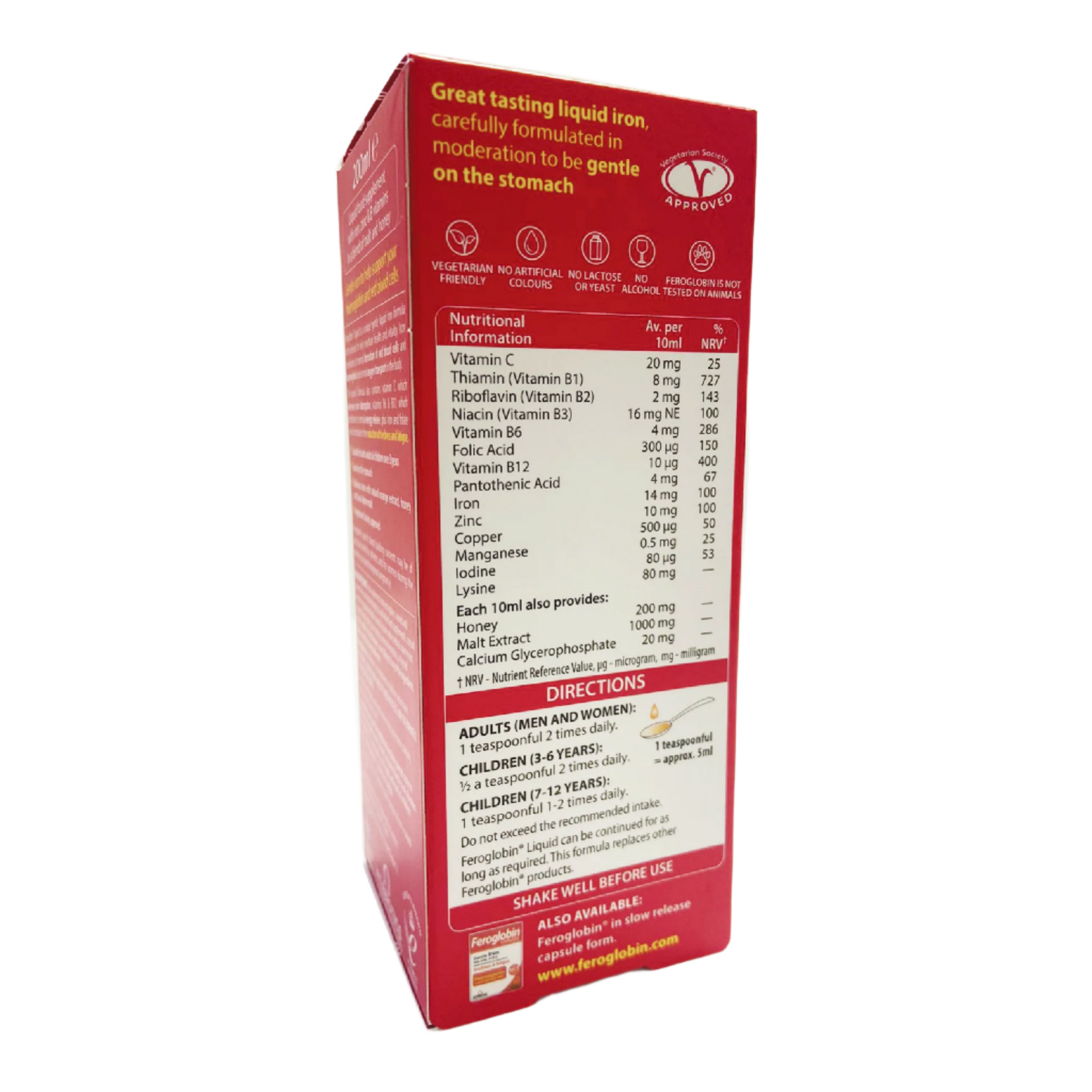 Vitamins B6 and B12, which support the regular production of energy, as well as iron and folate, which lessen fatigue, are found in feroglobin.