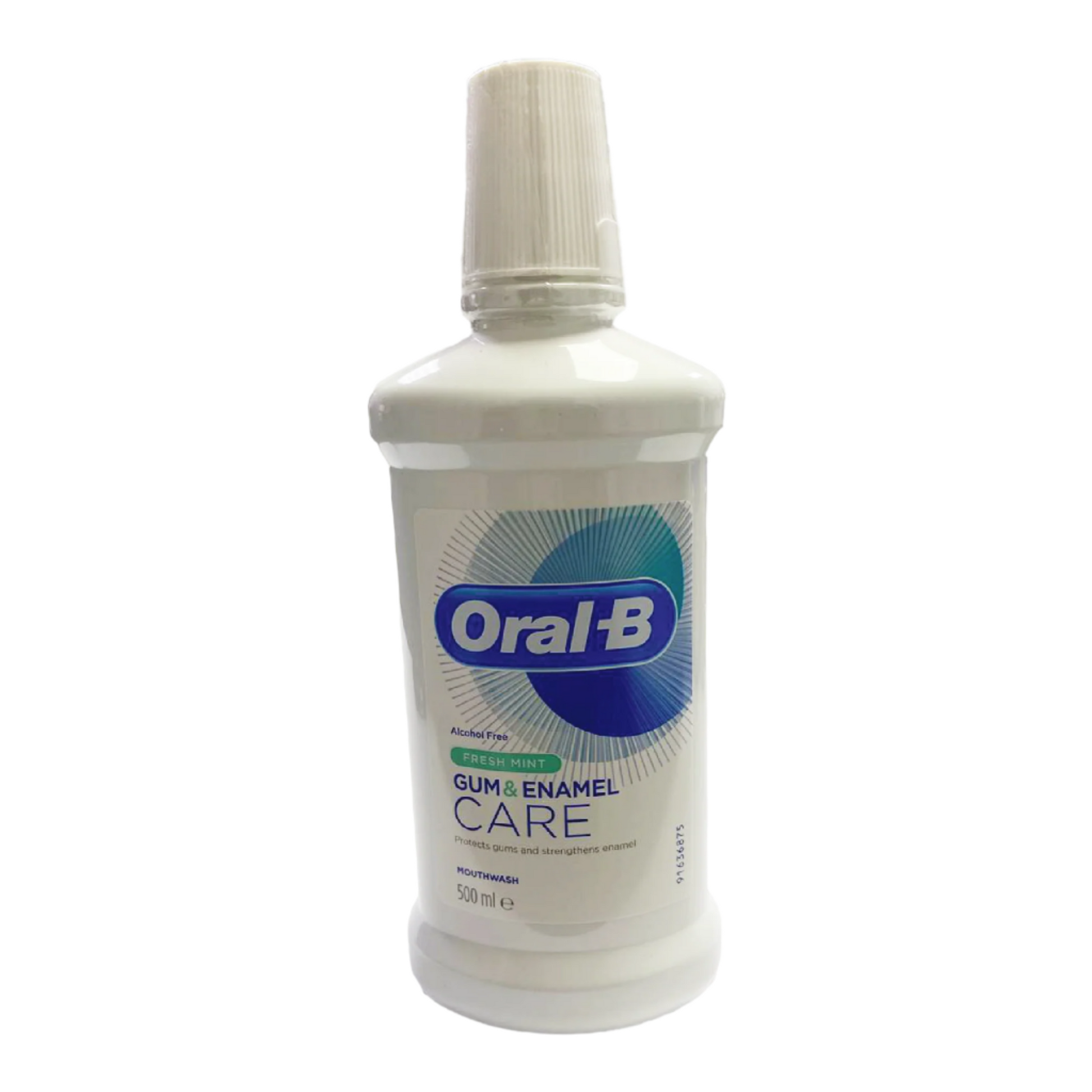 Oral-B Gum & Enamel Care Mouthwash 500ml is designed to strengthen enamel and promote healthy gums. Its advanced formula helps reduce plaque buildup while protecting against enamel erosion, supporting overall oral hygiene. Regular use aids in maintaining fresh breath and a balanced mouth environment to enhance dental health.