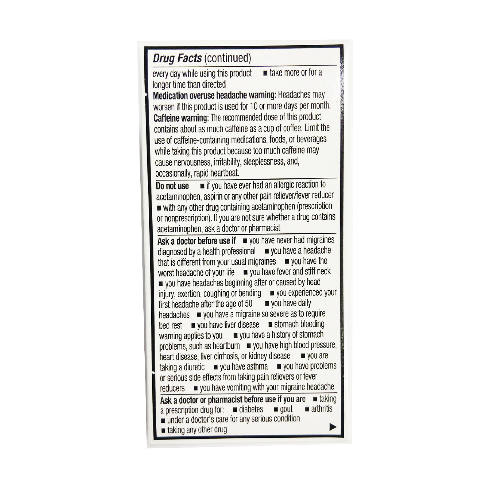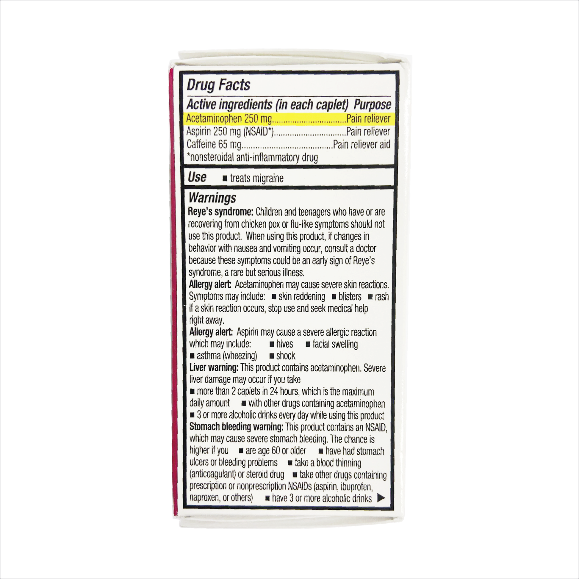 Combines acetaminophen and aspirin, coupled with caffeine to treat migraine symptoms including pain, nausea and sensitivity to light and sound.